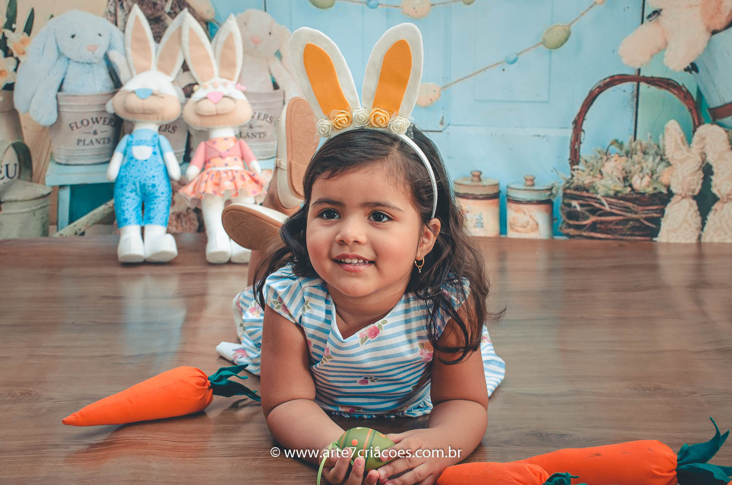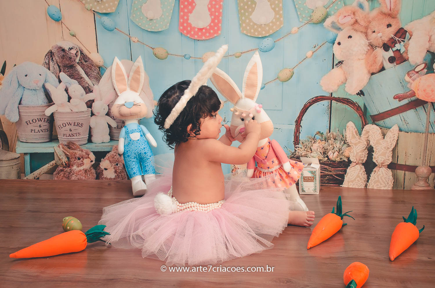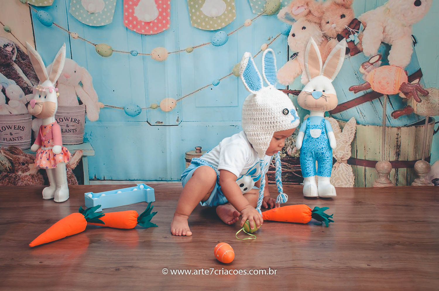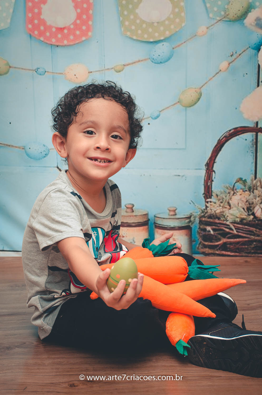 É um mini ensaio temático de Páscoa em cenário exclusivo para crianças à partir dos 6 meses (ou se o bebê já senta) até 5 anos.