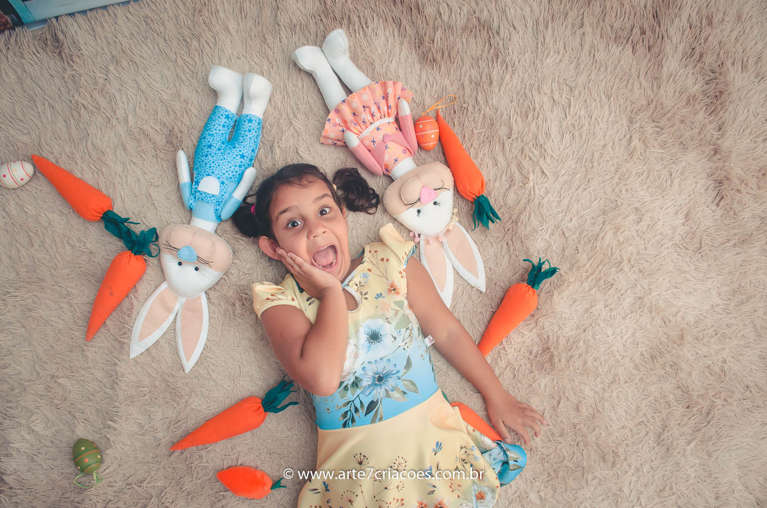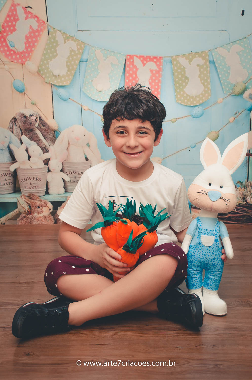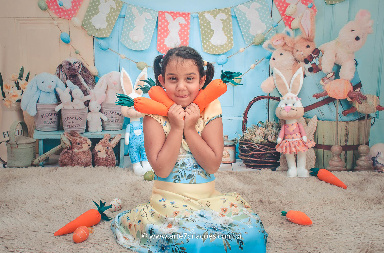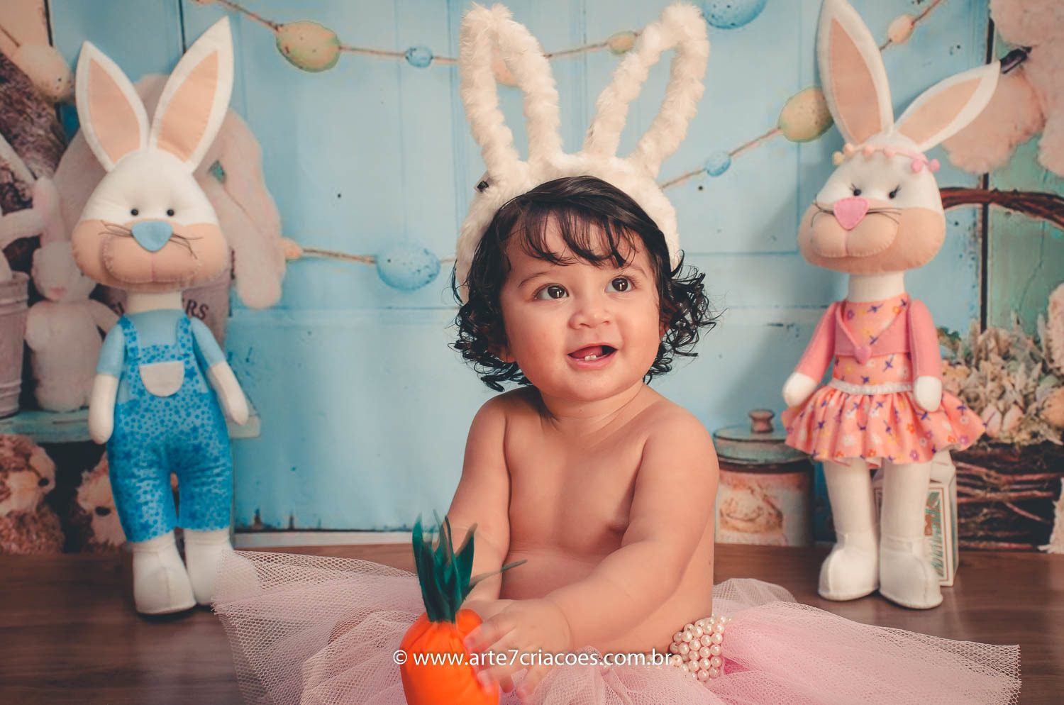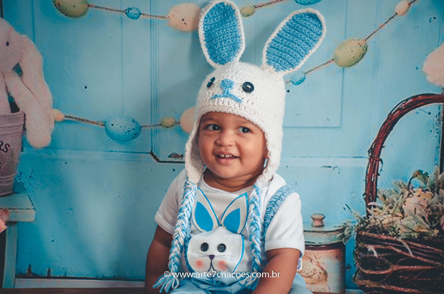 É um mini ensaio temático de Páscoa em cenário exclusivo para crianças à partir dos 6 meses (ou se o bebê já senta) até 5 anos.